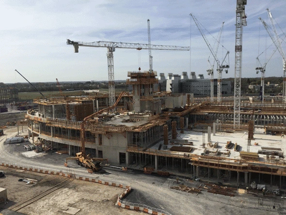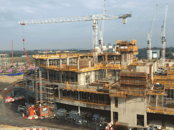 A six-storey, 40,000sqm post-tensioned concrete frame for one of the UK's leading heart and lung treatment centres, including an oval structure, twin atria and a waterproof basement.