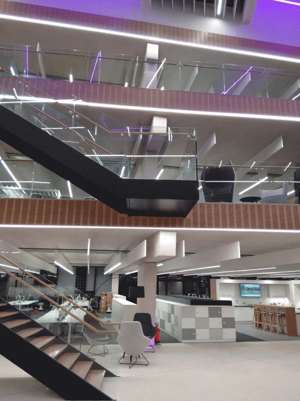 Delivered for main contractor Speller Metcalfe, this three-storey RC frame forms the prestige new headquarters for Atkins in Epsom.